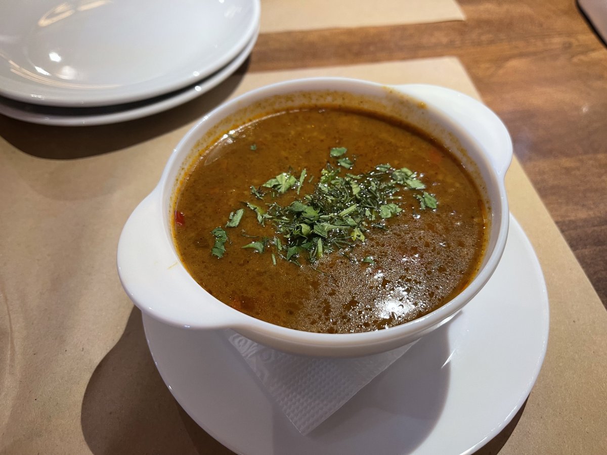 Харчо, більше схоже було на угорський гуляш тільки гострий. Мʼясо було жорстке та ніяке, як ганчірка.